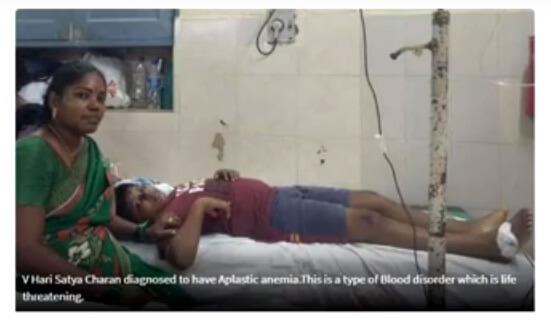 Financial Support, to V Hari Satya Charan S/O Apparao (late) lives in Samalkota, Andhra Pradesh. His father expired by road accident just before he had diagnosed with Aplastic anemia. This is a type of blood disorder which is life threatening. Doctors advised to undergo allergenic peripheral blood stem cell transplant (PBSCT). The estimated cost of operation is approx Rs 25 lakhs. They are financially very poor, so we have contributed a little amount towards his surgery. “We all hope he gets well soon”